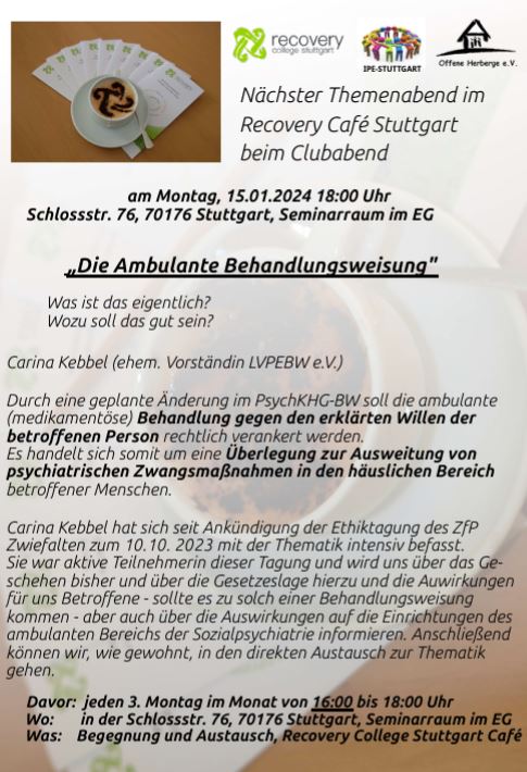 Ab 01. Januar ist mit dem Einverständnis der TeilnehmerInnen der IPE-Stuttgart vom 15.12.23 (11 TNerinnen)